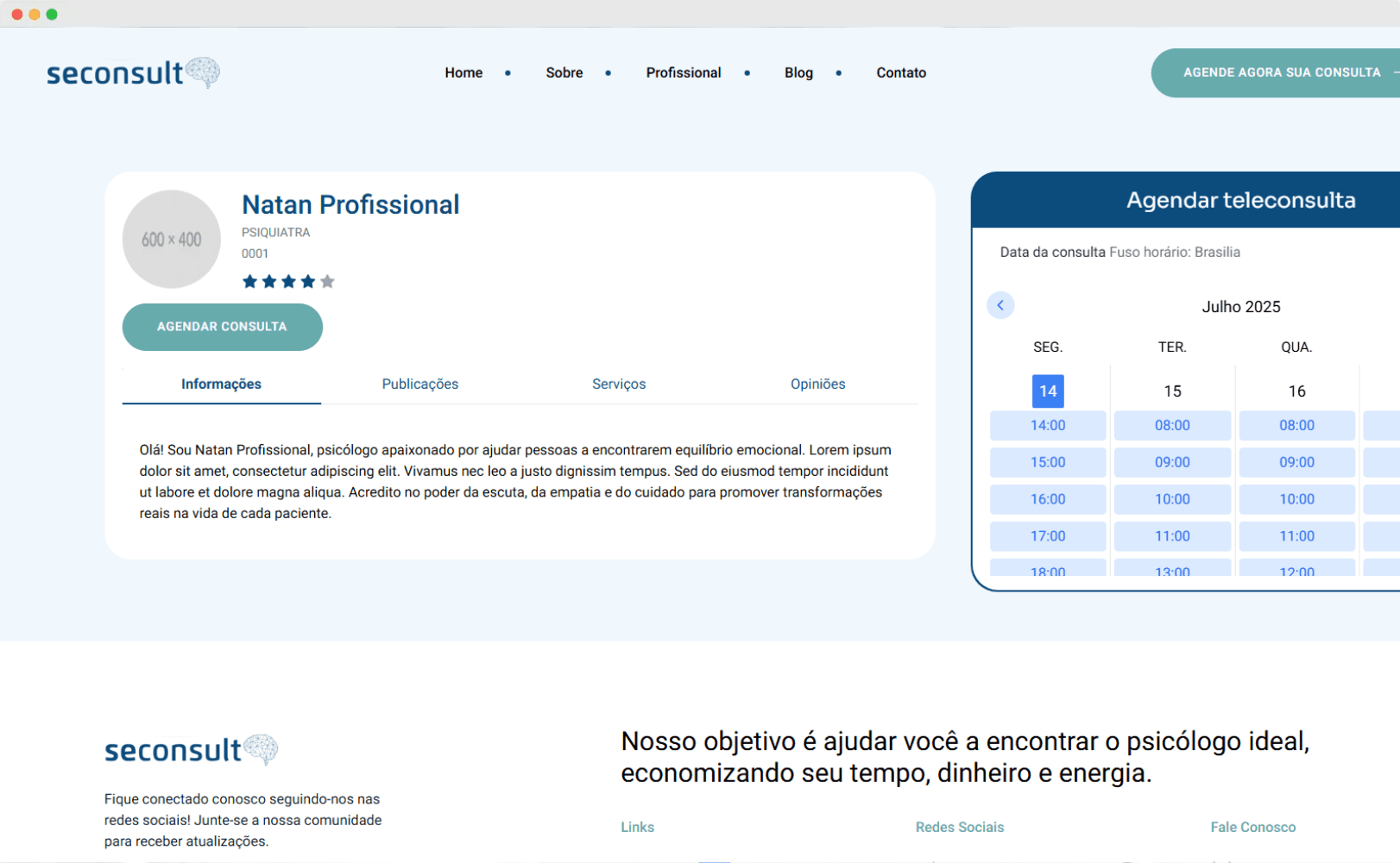 Cadastre-se no nosso site e ofereça aos seus pacientes a melhor experiência de agendamento online. Aumente sua produtividade e visibilidade com nossa plataforma intuitiva e eficiente. Simplifique sua gestão e melhore seu atendimento agora mesmo!