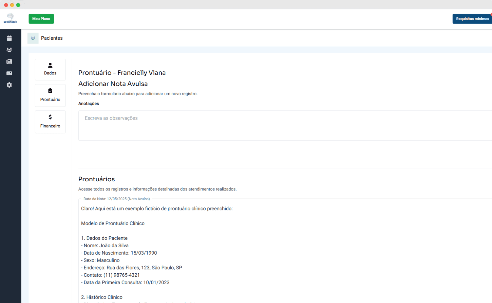 | Gestão de pacientes ilimitados | Até 5 Pacientes | ||